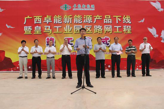 廣西卓能新能源科技有限公司于2013年8月簽約落戶在欽州皇馬工業園一區,主要建設50億安時鋰離子動力電池及10萬套新能源汽車電源產業化項目。產品廣泛應用于手機、筆記本電腦、電動自行車、電動汽車等的動力電能。該項目總規劃用地2000畝,總投資100億元。