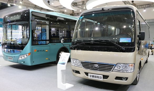 宇通ZK6125CHEVPG油電混動客車(左)與宇通E7純電動客車(右)