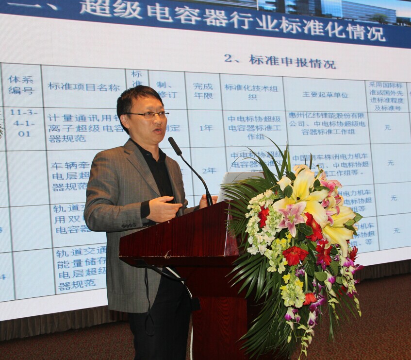 南車的三項標準在2015年一季度爭取立項,我們已經制定的標準情況簡單的再說一下,今年的兩項重點是超級電容器型號分類與命名方法我們都在做,在寧波開完會之后,大家對這兩項標準有一些看法和意見。我們也把相關意見做了一些梳理,后來又開了一個小范圍的審查會,這兩項標準已經通過審查,正在報批過程中,由科技司這邊備案發布。