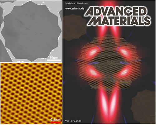 圖3 單晶十二角石墨烯(左)及《先進材料》內封底(右)