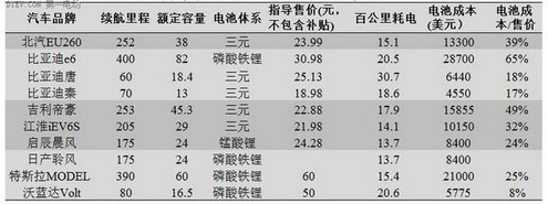 LG化學(xué)動力電池事業(yè)部首席執(zhí)行官Prabhakar Patil透露,“大多數(shù)電動汽車的電池成本約在400美元/kWh,特斯拉是240美元/kWh”,按照ASEC和松下給出的公開信息,大多數(shù)都在350-400美元/Kwh。新能源汽車成本主要由三大部分構(gòu)成:電池、電機(jī)、電控系統(tǒng),電池系統(tǒng)成本占到了總體的30%-50%,如果沒有國家補(bǔ)貼,這些汽車與同等價位的燃油車在性能和品牌上毫無競爭力可言。電池確實(shí)太貴!