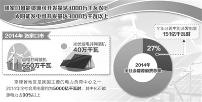 同時,京津冀地區巨大的能源消費需求,又為消納這些可再生能源提供了可能。數據顯示,京津冀地區是我國主要的電力負荷中心之一,2014年全社會用電量約為5000億千瓦時,其中化石能源電力占90%以上。按照《國務院關于印發大氣污染防治行動計劃的通知》,京津冀地區要實現煤炭消費總量負增長,未來可再生能源發展需求迫切,這為示范區提供了巨大的市場空間。