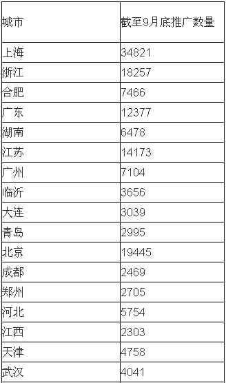 細(xì)分來看,截至9月已有上海、浙江省城市群、合肥、廣東省城市群、湖南省城市群5個(gè)城市(群)完成既定推廣目標(biāo),累計(jì)推廣量達(dá)79399輛,占比39個(gè)推廣城市群總推廣量的44%。僅上海一城市完成推廣量就達(dá)34821輛,占比城市推廣量的19.24%,完成推廣目標(biāo)的近3.5倍;緊隨其后的浙江省城市群完成推廣量為18257輛,超額完成推廣目標(biāo)(10100輛)的80%之多。此外,還有6個(gè)示范推廣城市群推廣完成率超過50%,江蘇省城市群完成率78%,與推廣目標(biāo)相差不足4千輛,廣州完成率71%,相差2896輛,臨沂完成率64%,相差2034輛;青島完成率58%;北京完成率56%。