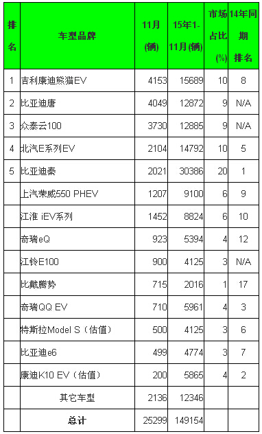 2015年11月,中國電動汽車市場繼續驚人增長,銷量突破2.5萬輛,是去年同期的4倍,也是連續第四個月創新紀錄,前11個月的累計銷量也突破15萬輛,這也是一個全球性的新紀錄。電動汽車的市場份額升至0.9%,這是一個令人難以置信的結果,如果想想2014年同期的0.25%,2013年同期的0.09%。