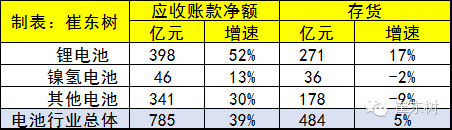 電池行業的資金壓力較重,這也是整個新能源產業鏈的共同特征。電池行業的應收賬款和存貨增長較快,尤其是鋰電池企業的應收賬款增長較快,達到398億元,接近兩個月的銷量,欠款占壓較嚴重。而電池行業的存貨增長也較快,這也是行業高速發展的正常特征。而其他電池行業的應收賬也增長較快,這也是有較大的壓力的。