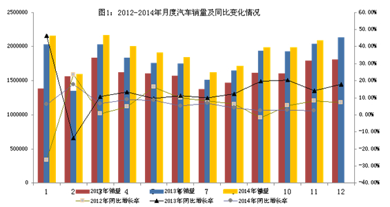 2014年11月,汽車產銷雙雙超過200萬輛,月度產銷基本保持較快增長。2014年1~11月,我國汽車產銷超過2100萬輛,同比分別增長7.2%和6.1%。