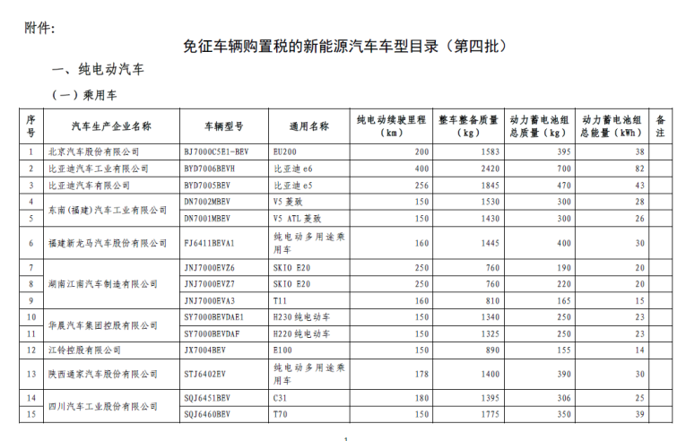 免征車輛購置稅的新能源汽車車型目錄及新能源汽車示范推廣車型目