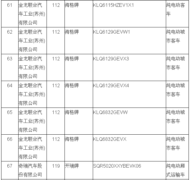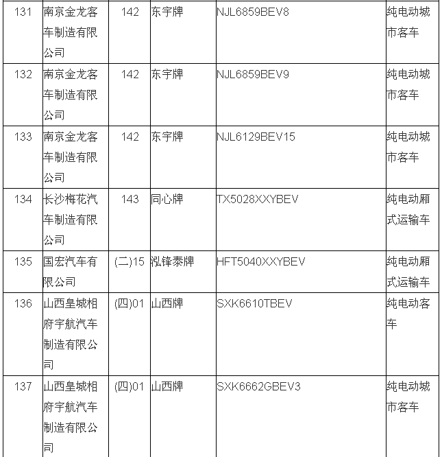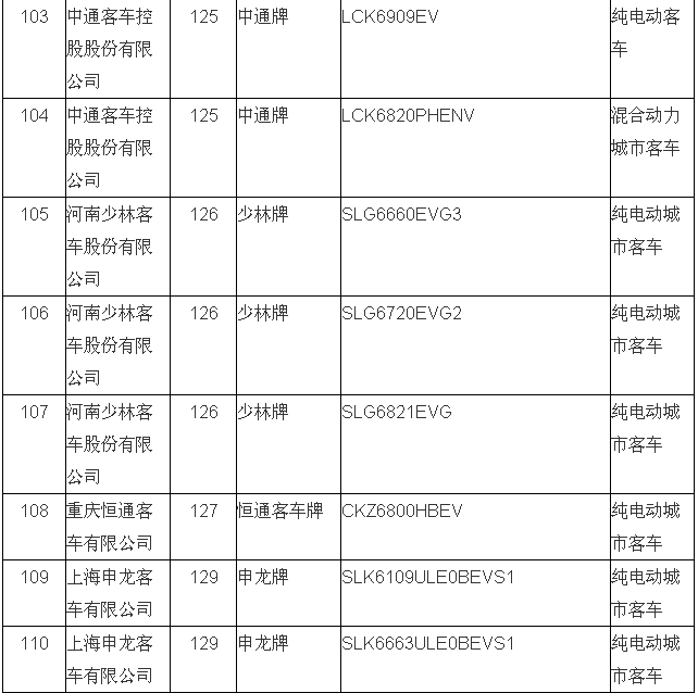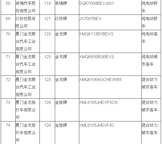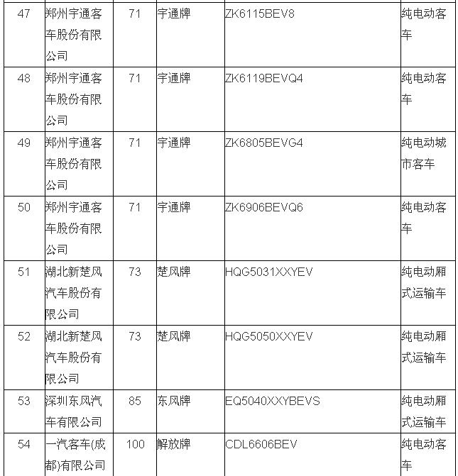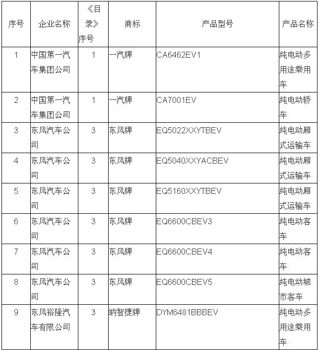 序號 企業(yè)名稱 《目錄》序號 商標 產品名稱 產品型號 1 中國第一汽車集團公司 1 解放牌 載貨汽車 CA1048 載貨汽車底盤 CA1085、CA1045、CA1250、CA1048、CA1200、CA1180 自卸汽車 CA3251 純電動城市客車 CA6124 純電動客車底盤 CA6124、CA6640 消防車底盤 CA
