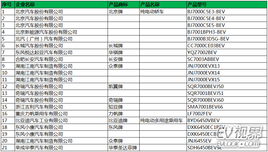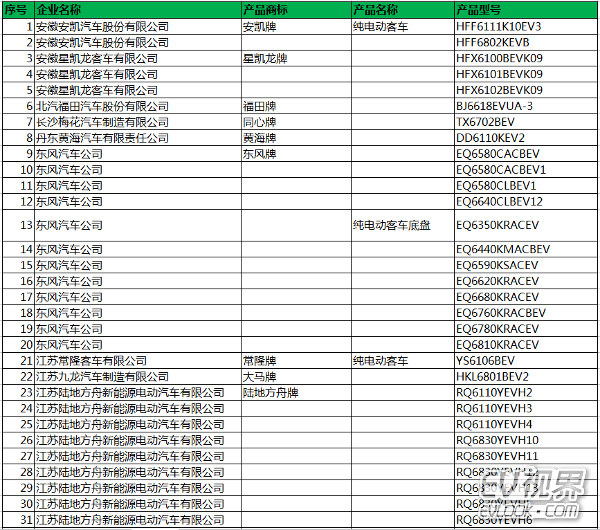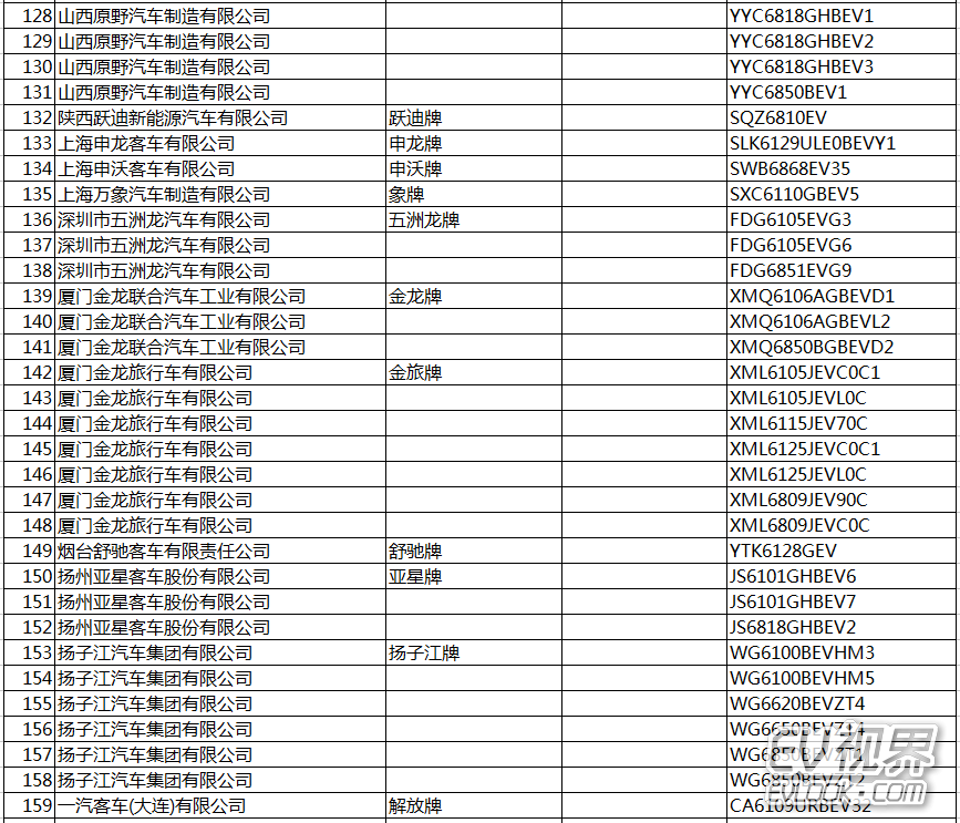 序號 企業名稱 《目錄》序號 商標 產品名稱 產品型號 1 中國第一汽車集團公司 1 解放牌 載貨汽車 CA1048 載貨汽車底盤 CA1085、CA1045、CA1250、CA1048、CA1200、CA1180 自卸汽車 CA3251 純電動城市客車 CA6124 純電動客車底盤 CA6124、CA6640 消防車底盤 CA
