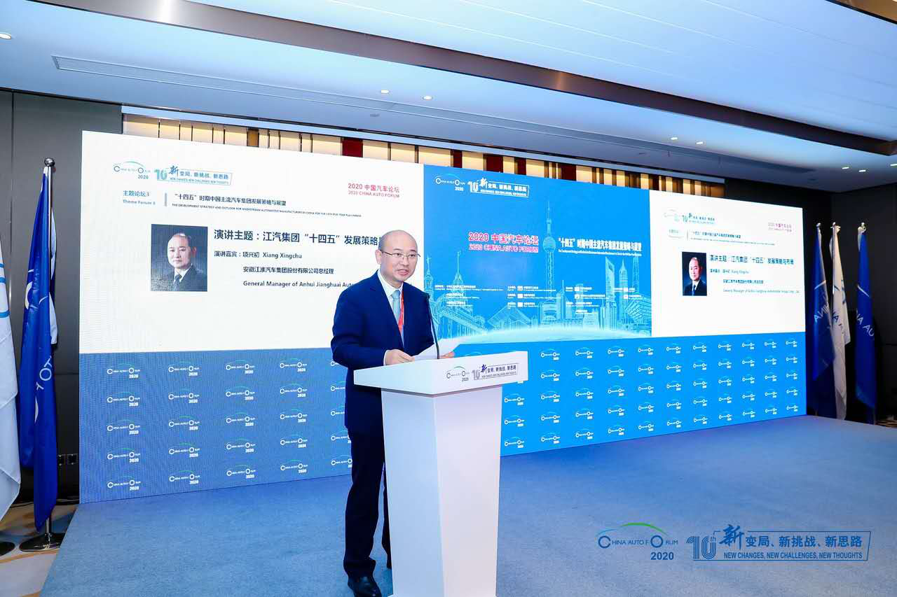 2020年8月13日-15日,“2020中國汽車論壇”在上海隆重召開。該論壇是由中國汽車工業協會(CAAM)主辦,世界汽車組織(OICA)、世界經濟論壇(WEF)唯一支持的行業頂級論壇。本屆論壇以“新變局 新挑戰 新思路——引領中國汽車新征程”為主題,緊扣時代脈搏, 求索突破之道,緊密圍繞“十四五”規劃,把控宏觀產業形勢,解析全球汽車產業發展動態。其中,在8月14日下午舉辦的“‘十四五’時期中國主流汽車集團發展策略與展望”主題論壇上,安徽江淮汽車集團股份有限公司總經理項興初發表了主題為“江汽集團‘十四五’發展策略與布局”的精彩演講。以下內容為現場演講實錄: