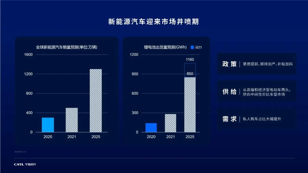 大家都在喊供給與需求缺口巨大,為什么?就是因為需求井噴了一下,這個井噴是因為歐洲的補貼、中國的《新能源汽車產業發展規劃(2021—2035年)》、雙積分制度等。