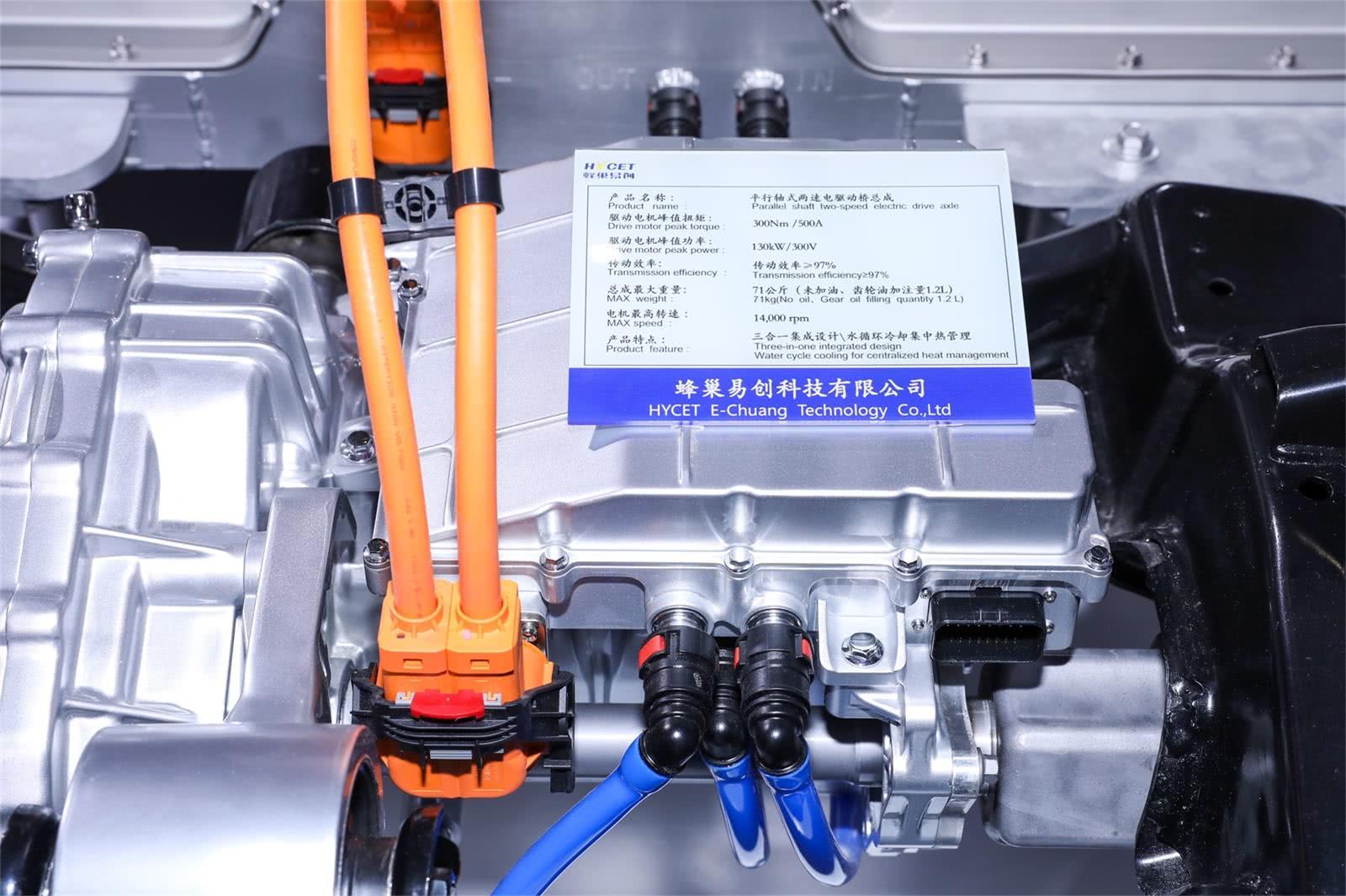 除此之外,蜂巢易創自主開發的一系列三合一電驅總成產品(電機、電控、減速器合一)也悉數亮相,具備高集成性、高NVH性能,并具備2擋電驅配置,可以大幅降低體積、質量、成本,進而提高電動車的行駛里程。該產品可兼容EV以及PHEV(P4)系統。