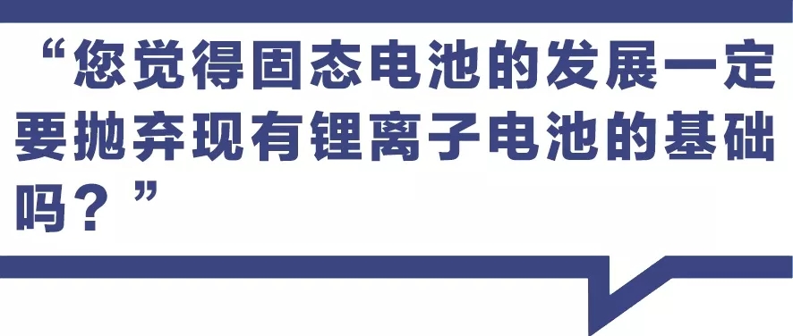 我覺得恰恰相反。對(duì)于固態(tài)電池,我希望不要完全甩掉現(xiàn)在的鋰離子電池,最好在鋰離子電池的基礎(chǔ)上進(jìn)行改進(jìn),這樣發(fā)展起來會(huì)很快,也會(huì)很順暢。而且從目前的形勢(shì)來看,我們也需要做這方面的工作。