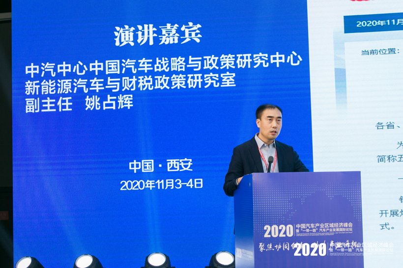 2020年11月3-4日,由中國汽車技術研究中心有限公司和陜西省工業和信息化廳共同主辦的2020中國汽車產業區域經濟峰會暨“一帶一路”汽車產業發展國際論壇隆重召開。峰會緊跟當前政策、技術和市場發展趨勢,以“聚焦行業協同發展 助力區域產業升級”為年度主題,旨在充分整合行業資源,積極推動區域汽車產業深度合作,加快高端制造業轉型升級,引領新能源和智能網聯汽車戰略性新興產業高質量發展。峰會期間,中汽中心中國汽車戰略與政策研究中心新能源汽車與財稅政策研究室副主任 姚占輝發表了題為“關于燃料