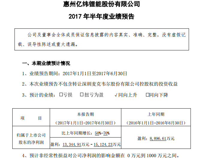 億緯鋰能4月27日發(fā)布2017年一季報(bào),一季度公司實(shí)現(xiàn)營業(yè)收入5.7億元,同比增長47.82%