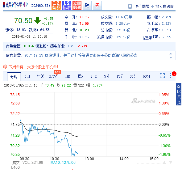 截至2017年前三季度,贛鋒鋰業業績保持高增長態勢,營業收入28.42億元,同比增長40.51%,歸屬于上市公司股東的凈利潤10.04億元,同比增長106.57%。受益于新能源投資主題反復活躍的市況,贛鋒鋰業實現業績與股價雙飛。