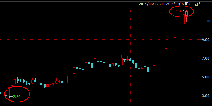 同期,王傳福的比亞迪股份(01211)漲幅雖比不上李書福的吉利汽車(00175),但比亞迪電子卻“完爆”吉利汽車。2016年2月15日至4月13日,比亞迪電子股價漲幅近320%,目前還處于上漲趨勢,而吉利汽車同期漲幅不到280%,比亞迪電子將吉利甩出了一條街的距離。比亞迪電子周K線如下:
