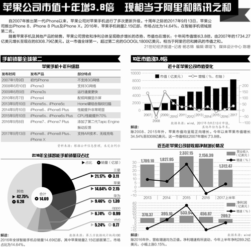 咨詢機構弗若斯特沙利文大中華區(qū)總裁王昕在接受21世紀經濟報道記者采訪時認為,新款iPhone回歸雙面玻璃機身、取消home鍵的全面屏設計,以及無線充電等重大的技術突破,刺激了消費者的購買欲望。“蘋果在硬件配置方面創(chuàng)新不足,小米、三星、vivo、努比亞等品牌已經表示將發(fā)布全面屏手機;在人臉識別方面,三星今年初推出的S8就加入了人臉識別技術。”