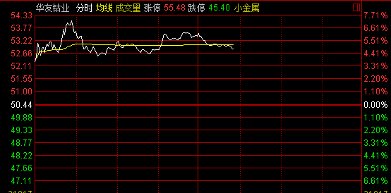 今日,華友鈷業盤中一度大漲7.71%,截至發稿時,華友鈷業報52.98元,漲幅為5.04%,領漲有色板塊。