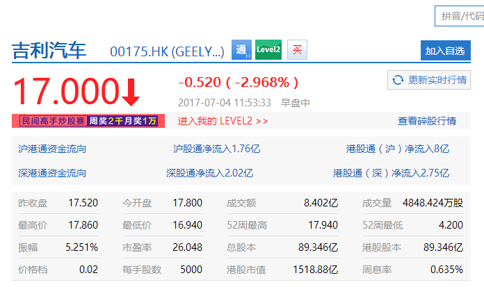 吉利汽車:市值達到1364.94億元首超廣汽集團 位居汽車整車第二