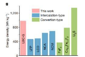 圖|電池的正極材料(LBC-G)能量密度達(dá)到了970Wh/kg(來源:該研究論文)