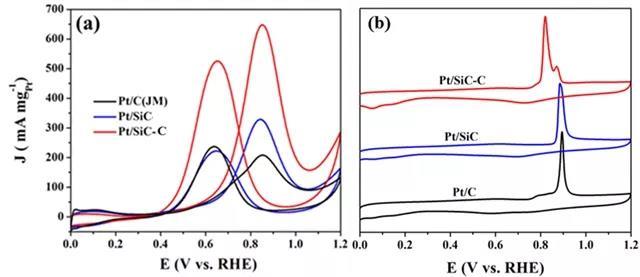 近日,中國科學院山西煤炭化學研究所童希立科研團隊在長期碳化硅研究基礎上,發現通過納米碳化硅載體支持,可以明顯減少Pt的使用量并保持活性(是商用Pt/C催化劑3倍以上),同時提高了其抗CO中毒能力(圖1)。