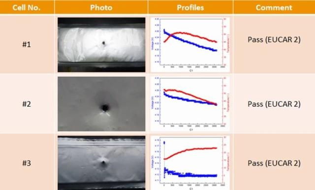 對于“安全”的堅守讓萬向獲得了豐厚的回報,在各大動力電池都在為高能量密度鋰離子電池的安全性焦頭爛額的時候,萬向又推出了能量密度達到280Wh/kg的高安全動力電池產品,該電池不僅實現了超高能量密度,還在USABC標準的針刺測試(Ф3mm,80mm/s)中實現了不起火、不爆炸,針刺后仍然能夠維持穩定的電壓平臺,達到了EUCAR2的安全等級。在過充測試中該電池同樣表現出了驚人的安全性,順利通過1C倍率過充至2倍電壓測試,達到EUCAR3安全標準。