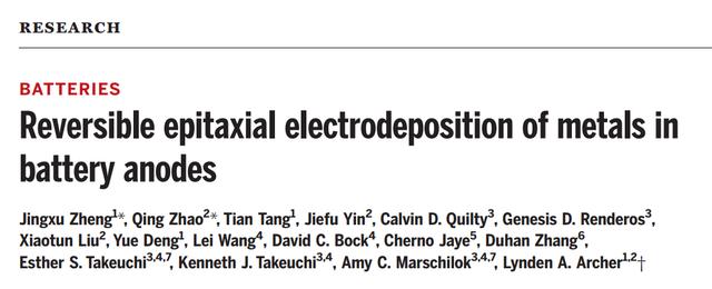 文章已在SCIENCE雜志上發(fā)表,鄭景旭為第一作者。題為: “ Reversible epitaxial electrodeposition of metals in battery anodes ”。