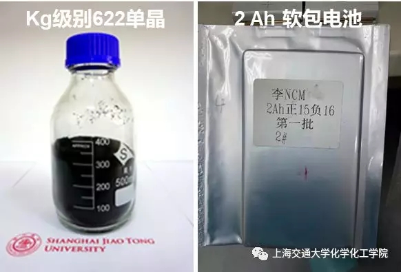 圖3. 公斤級622型單晶NMC正極材料及Ah級軟包全電池