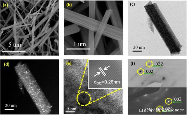 下圖為Cu箔表面的高分辨率SEM圖片,從圖中能夠看到Cu箔表面隨機生長了大量的Cu(OH)2納米棒,這些納米棒的長度在10um左右,由于這些納米棒本身具有多孔的特性,并且納米棒的底端直接與Cu箔相連,因此賦予了Cu(OH)2納米棒快速充放電的能力。