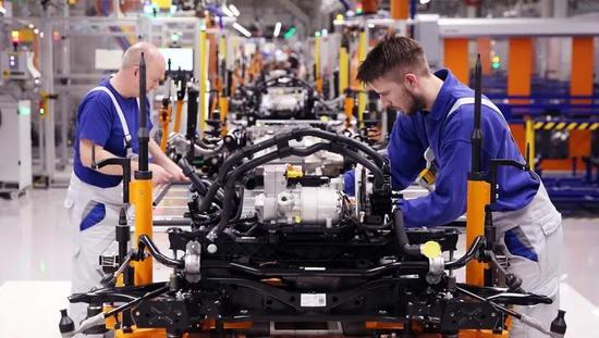 德國大眾的員工正在組裝ID。 3電動汽車的下半車身和電池。圖片來源:Ronny Hartman/AFP/Getty