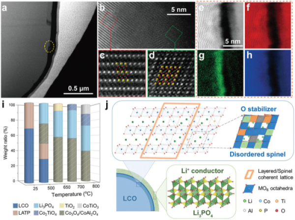 圖4. Ti-Mg-Al摻雜LiCoO2顆粒內部缺陷調控充放電結構相變機制