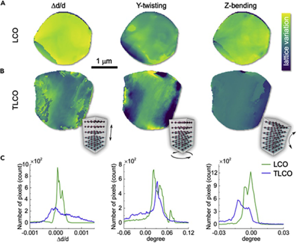 近年來,該研究團隊一直專注于高電壓鈷酸鋰材料技術開發與基礎科學問題研究。前期研究表明高電壓鈷酸鋰材料改性需要采用表面和體相改性等多種技術相結合的方法。繼研究團隊去年成功開發了Ti-Mg-Al痕量元素摻雜改性技術并通過多種實驗方法結合揭示各摻雜元素的作用機制后(Nature Energy, 2019, 4, 594),最近研究團隊與美國布魯克海文國家實驗室和美國斯坦福線性加速器國家實驗室合作,進一步利用先進同步輻射X射線三維納米衍射成像技術研究了Ti-Mg-Al共摻雜鈷酸鋰材料顆粒結構與材料在充放電過程中反應可逆性的關系。該實驗技術可以觀察到微米級顆粒材料內部50nm空間尺度下晶體結構缺陷及其空間分布。研究結果表明摻雜元素可以調控鈷酸鋰顆粒內部的缺陷及其分布,進而抑制鈷酸鋰材料在高電壓充放電過程中導致材料電化學性能衰減的結構相變。該結果近日以Hierarchical Defect Engineering for LiCoO2 through Low-Solubility Trace Element Doping為題發表在Cell子刊Chem上。