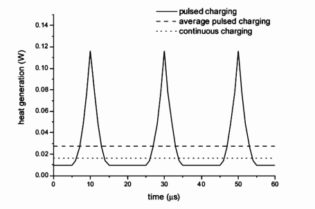 圖1 通過脈沖和連續充電模式產生的熱量