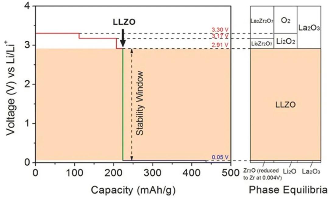 圖2. 計算的LLZO平衡電位分布和相平衡