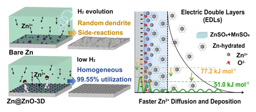 梁叔全團隊研制的新型Zn@ZnO-3D負極材料結構及其理論計算結果