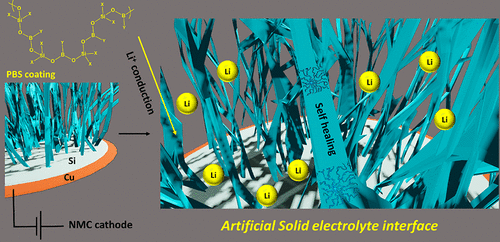 聚合物涂層在此就可發揮作用。它們可以防止在硅上形成過多的SEI,并形成人造且穩定的SEI。研究人員指出PBS作為硅陽極涂層極具潛力,但之前并未有研究對其作用機理作出清晰解釋。如Matsumi教授所說:“對基于PBS且定義明確的聚合物的相關報道很少,不能為其應用和反應提供足夠的機械依據。因此,我們希望可以評估并闡明聚合物涂層對硅陽極的作用:聚合物涂層不僅可作為自修復的人造界面,還可以防止有害的體積膨脹。”