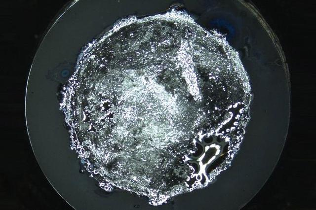然而正如上圖所展示的那樣,位于固體電解質的灰色圓盤上的金屬電極(帶有紋理的內圈部分),正在其表面上形成讓鋰電池研究人員頭疼不已的枝晶。