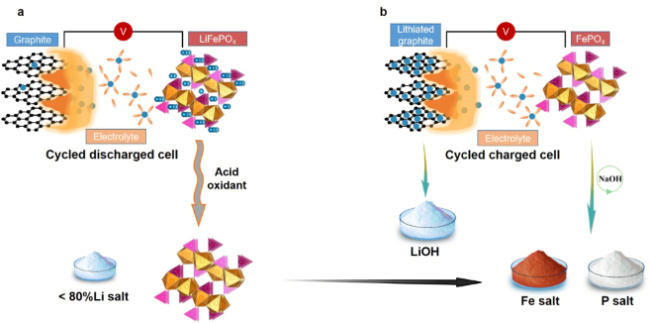 圖2.室溫下從充電態廢舊磷酸鐵鋰電池中回收提取單個元素示意圖