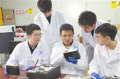 “我們研發(fā)的固態(tài)電池能量密度高達450瓦時每千克,快速充電30分鐘即可,續(xù)航里程可達800公里以上。”王子豪是團隊項目負責人,談及項目,這名控制工程專業(yè)的在讀研究生自信滿滿。走進團隊的實驗室,整齊排放的藍色電芯被整體封裝在規(guī)整的電池盒中,身著實驗服的團隊成員正對研究成果——全固態(tài)硅碳鉭鋰氧化物綠色動力電池進行測試、調(diào)試。