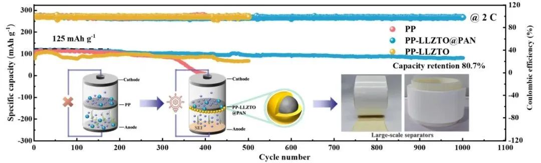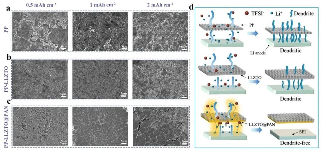 LLZTO@PAN功能化隔膜抑制鋰枝晶示意圖