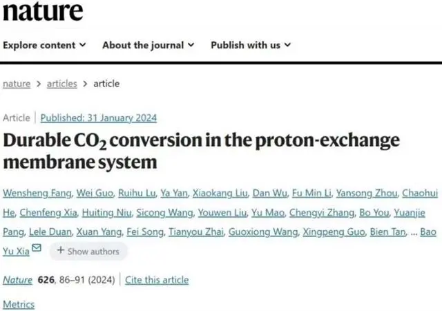 電池將二氧化碳轉(zhuǎn)化為具有高經(jīng)濟(jì)價(jià)值的甲酸,并打破多項(xiàng)世界紀(jì)錄。1月31日,團(tuán)隊(duì)研究成果“質(zhì)子交換膜系統(tǒng)中持久的CO2轉(zhuǎn)化”在《自然》刊發(fā)。