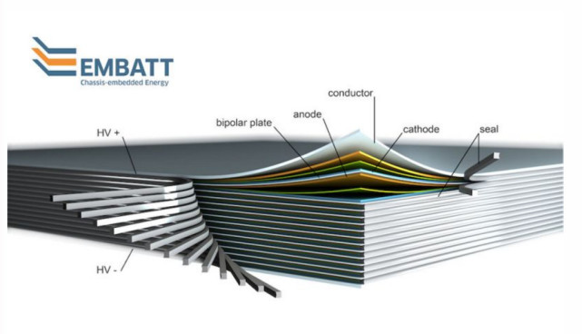 研究人員將所謂的雙極性電極一個(gè)一個(gè)堆疊起來(lái),如同將一張張紙疊起來(lái)一樣,電極之間用薄薄的電解液分開(kāi),里面還有一種材料防止電荷短路。然后科學(xué)家將疊起來(lái)的薄片封裝,規(guī)格約為10平方英尺(1平方米),它的上部與下部與汽車電力系統(tǒng)連接。