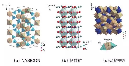 在氧化物中,鋰離子在尺寸大得多的O2-構成的骨架結構間隙進行傳導,減弱Li-O相互作用、實現鋰離子的三維傳輸及優化傳輸通道中鋰離子與空位濃度的比例均有利于提高鋰離子的電導率。基于這些理念,一些具有復雜結構的氧化物鋰離子導體材料相繼出現,其中具有代表性的包括石榴石型結構體系、鈣鈦礦結構體系、鈉快離子導體結構體系。然而,這些材料中,只有石榴石型結構體系的材料對金屬鋰穩定。另兩種結構體系中電導率較高的材料均含有可被金屬鋰還原的Ti、Ge等元素。此外,石榴石型結構體系材料對空氣有較好的穩定性,原料成本低,燒結體具有較高的機械強度,因此具備作為理想固態電解質廣泛應用于全固態鋰電池的潛力。