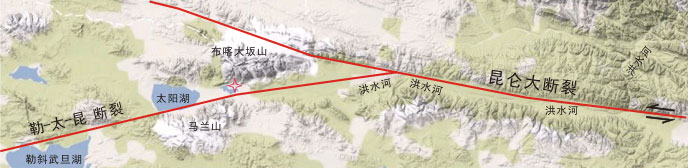 圖1 十字星指示水熱場位于布喀大阪山麓昆侖大斷裂活動斷層交匯地帶,含鋰熱水經由150個熱泉口噴涌地表形成湖泊并注入洪水河。