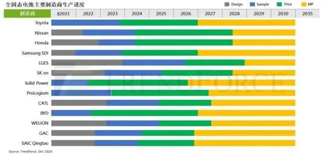 根據TrendForce集邦咨詢最新調查,豐田、日產、三星SDI等全球制造商已開始試制全固態電池,隨著業者競相量產,預估產量可于2027年前達GWh (吉瓦時)水平。