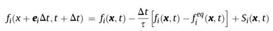 網格玻爾茲曼方法(LBM)來源于對理想氣體的研究,LBM中的顆粒采用分布函數(如下式所示)模擬,其中f表示在位置x和時間t的位置發現顆粒的可能性。