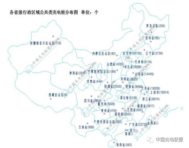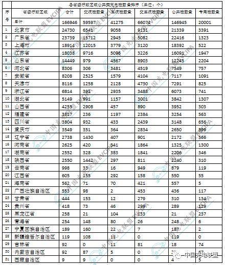 省級行政區域內所擁有的公共類充電樁數量前十的分別為:北京24730個、廣東23739個、上海18914個、江蘇18038個、山東14449個、河北8306個、安徽8208個、天津8116個、浙江6814個、湖北5149個。