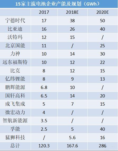 另一家上市公司國軒高科表示,預計2018年動力電池產量可達到8-9Gwh,而整體產能可達到13-14Gwh,到2020年底,產能預計在20Gwh左右。