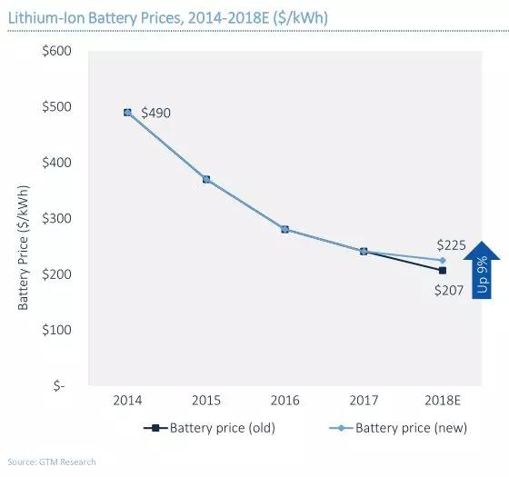 GTM Research預(yù)測,電池價格在2018年期間還會再下降14%,但價格下降的幅度明顯放緩。
